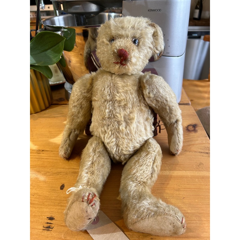 Tommy is a very rare Hecla. He is in good condition. He has a good covering of blond mohair and a pronounced snout with cinnamon stitching. He is a little hard of hearing! His one remaining ear is set low on his head. His mohair is in good condition for someone of 120+ years old. A very handsome chap!