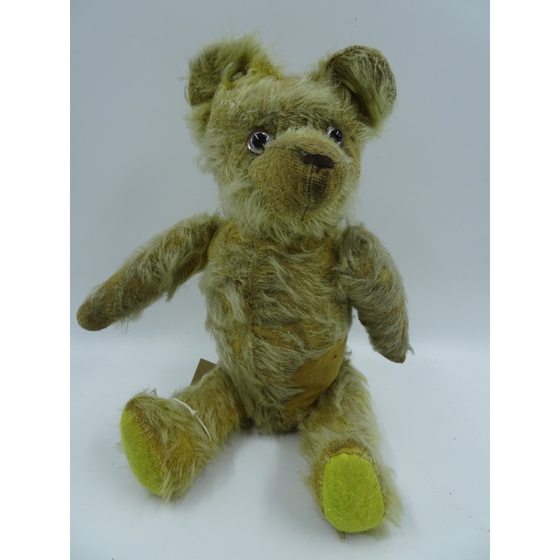 "British Chad Valley Made" Yellow Birdie is a very early Chad who used to be yellow with his button in his ear. `He has glass eyes original stitched nose, felt pads with no paw pads and a a lovely expression. Comes without his modern nurses outfit which is