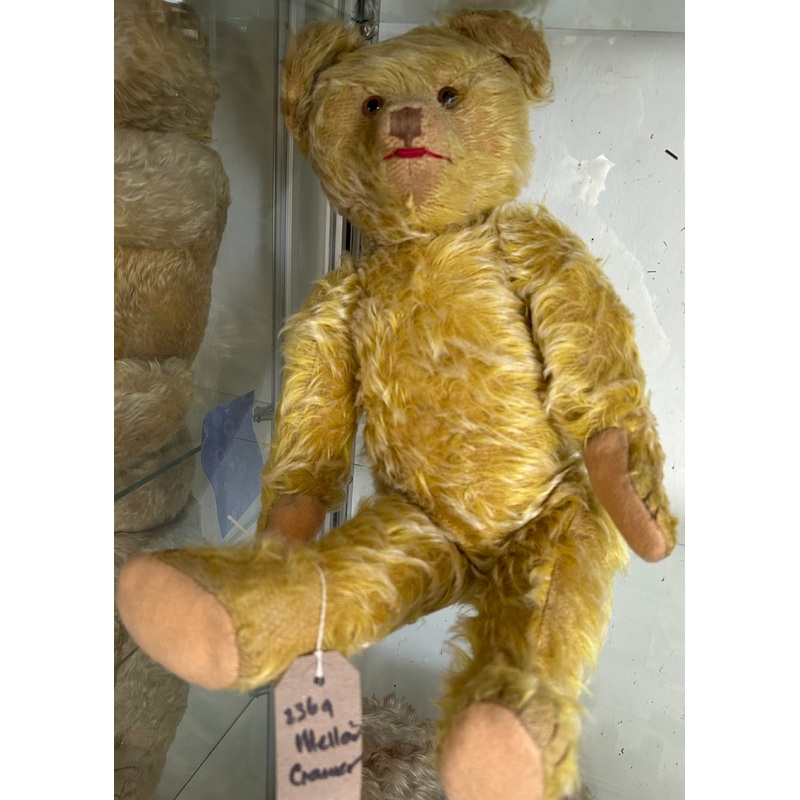 This is a rare Eduard Crmer (EDUCA) teddy bear from the early 1920's. He is about 17 (45cm) tall, with lightly tipped long mohair. He has jointed arms, legs and head, glass eyes and red embroidery mouth. He has a non working growler. He is stuffed with woo