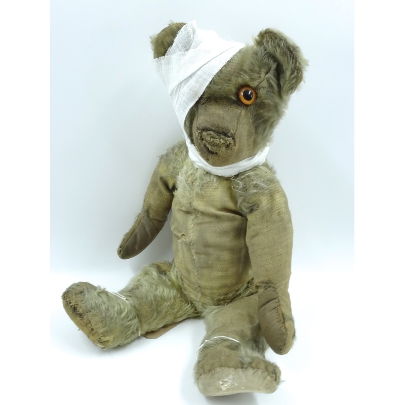 Grub is a Chad Valley with an early Aerolite button on his neck"Chad Valley Aerolite Trade Mark" He has beautiful, startling Moon eyes. Everything about him shout "Love me!" A sorry old soleful handsome fellow Description Date 1923-26 Make Chad Aerolite Bu