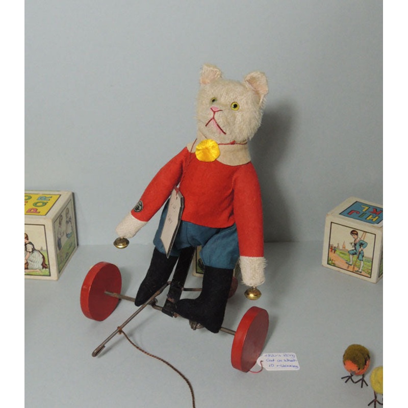 1927 Bing Cat pull toy Both cat and poodle pull toy have metal ID tag attached to the arm, old store price tag on one wheel and Original hang tag with ID number.A little over a year ago I purchased a Bing lot from an old shop storage. The Bing museum in Nr