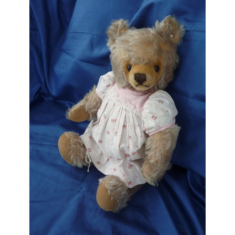 Marybeth is a 1960 Steiff "Original" bear with a heart shaped face and inserted shaved muzzle. She has pads which need repairing not shown in the photos Description Date 1960 Make Steiff "Original" Button Yes Label Fabric Mohair Size 15 ins Eyes Glass Feat