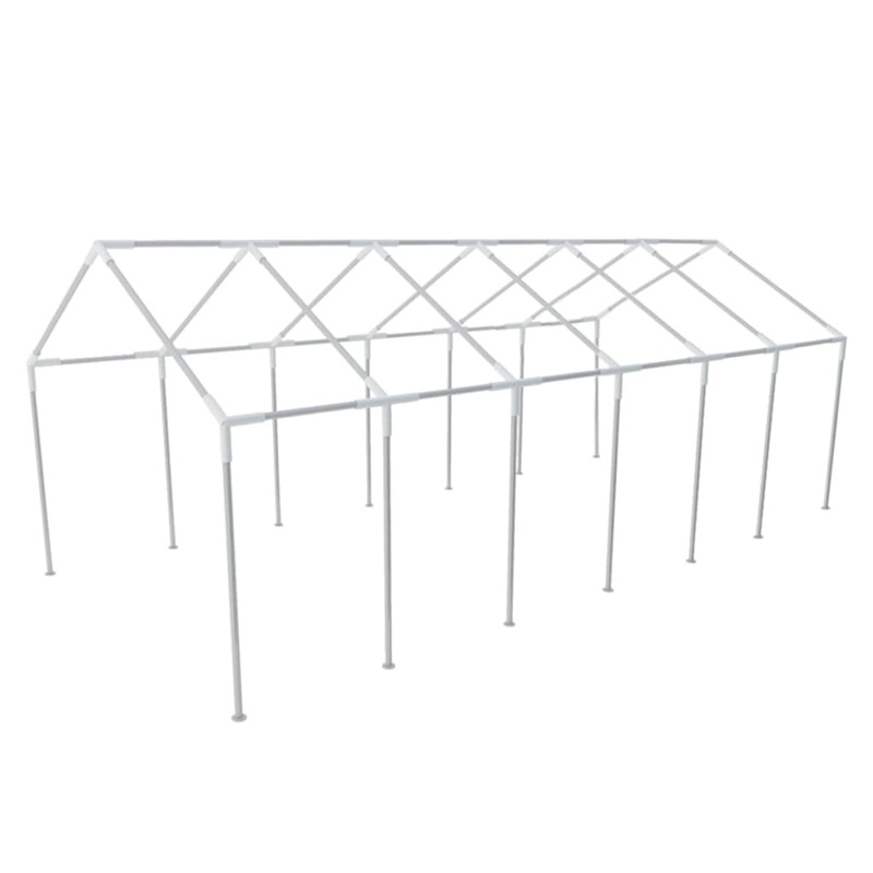 This steel frame is meant for use with our party tent cover (12 x 6 m) which can be used for all your outdoor events. This set contains everything you need for the frame, including the stakes and ties! This frame is manufactured from rust-resistant steel a