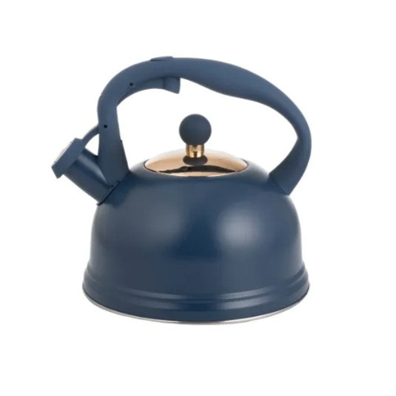 Typhoon Otto navy stove top kettle features a classic and stylish blue matte design with an elegant gold metallic lid.With a generous capacity of 1.8 litre, the Otto kettle is perfect for brewing water for hot drinks and cooking. The whistling mechanism le
